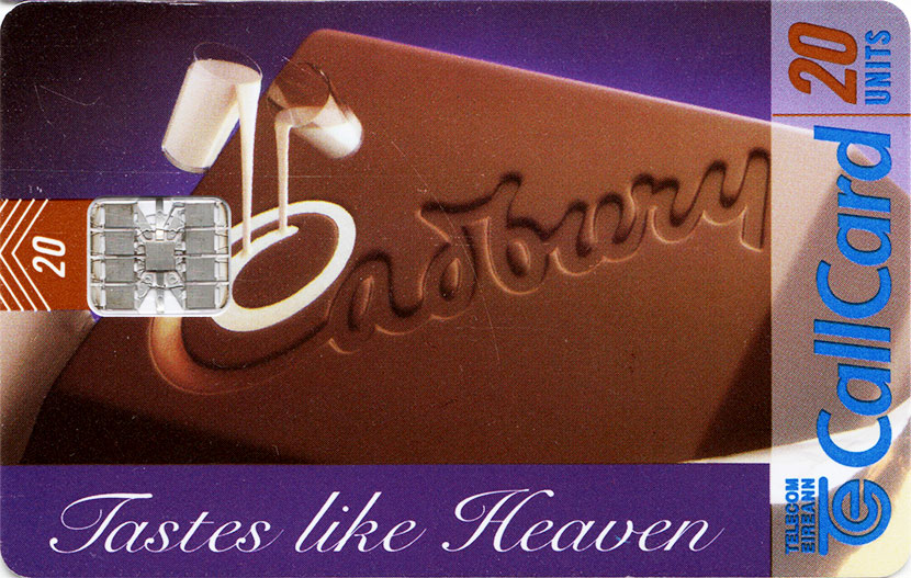 This Callcard was issued by Cadbury's to advertise their Chocolate products. Two chip variations of the Cadbury's Callcard exist. There was a Gemplus version which was released in July '97 and then a Schlumberger one that was re-issued later in September 1998.