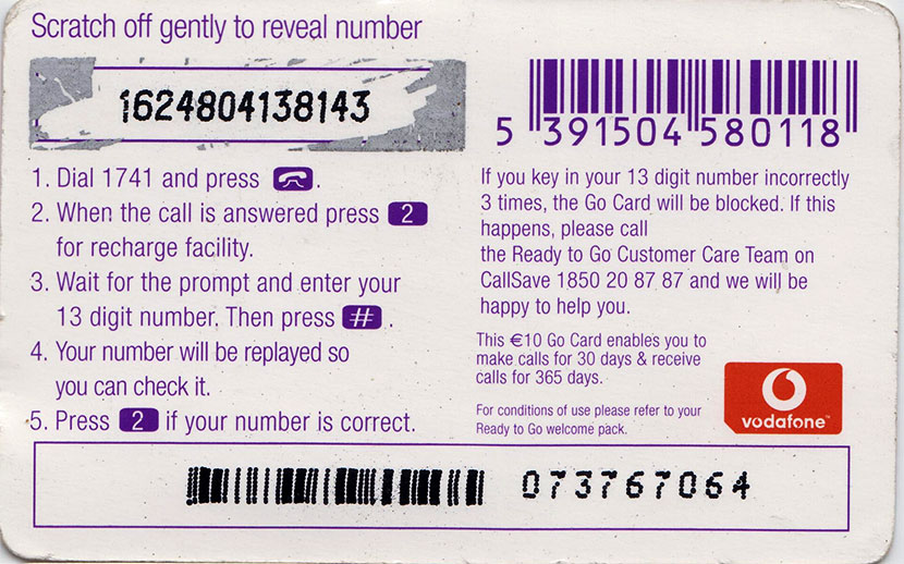 In 2001, Eircell became defunct after the company was aquired by Vodafone. It is interesting to note that while the branding had changed, Vodafone kept using the Ready to Go/Go Card branding.